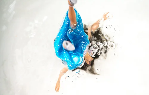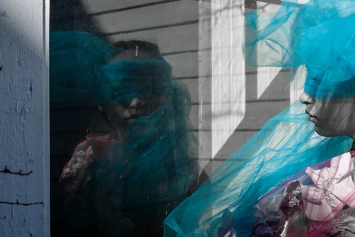 She was nestled in a bookshelf among other discarded dolls and old artifacts. Chaotic hair and overdressed in fire engine red, with eyes that followed you across the room. Small in stature but strong in personality, she was mine for $26. Drawn to her complex gaze, hidden smile and seemingly never-ending expressions, I begin work on an explorative self-portrait series, unveiling autobiographical memories of people and experiences. The images consist of (re)constructed moments in time that have been loosely woven together. Windows into the past, they capture elusive emotions and express experiential moments that are simultaneously personal and universal. Memory serves the storyteller as much as it serves the truth.”